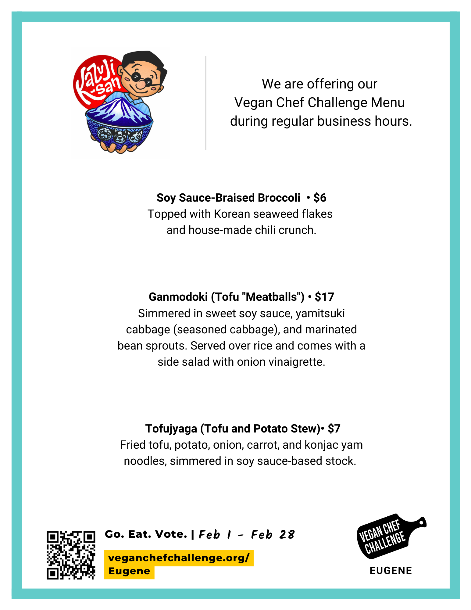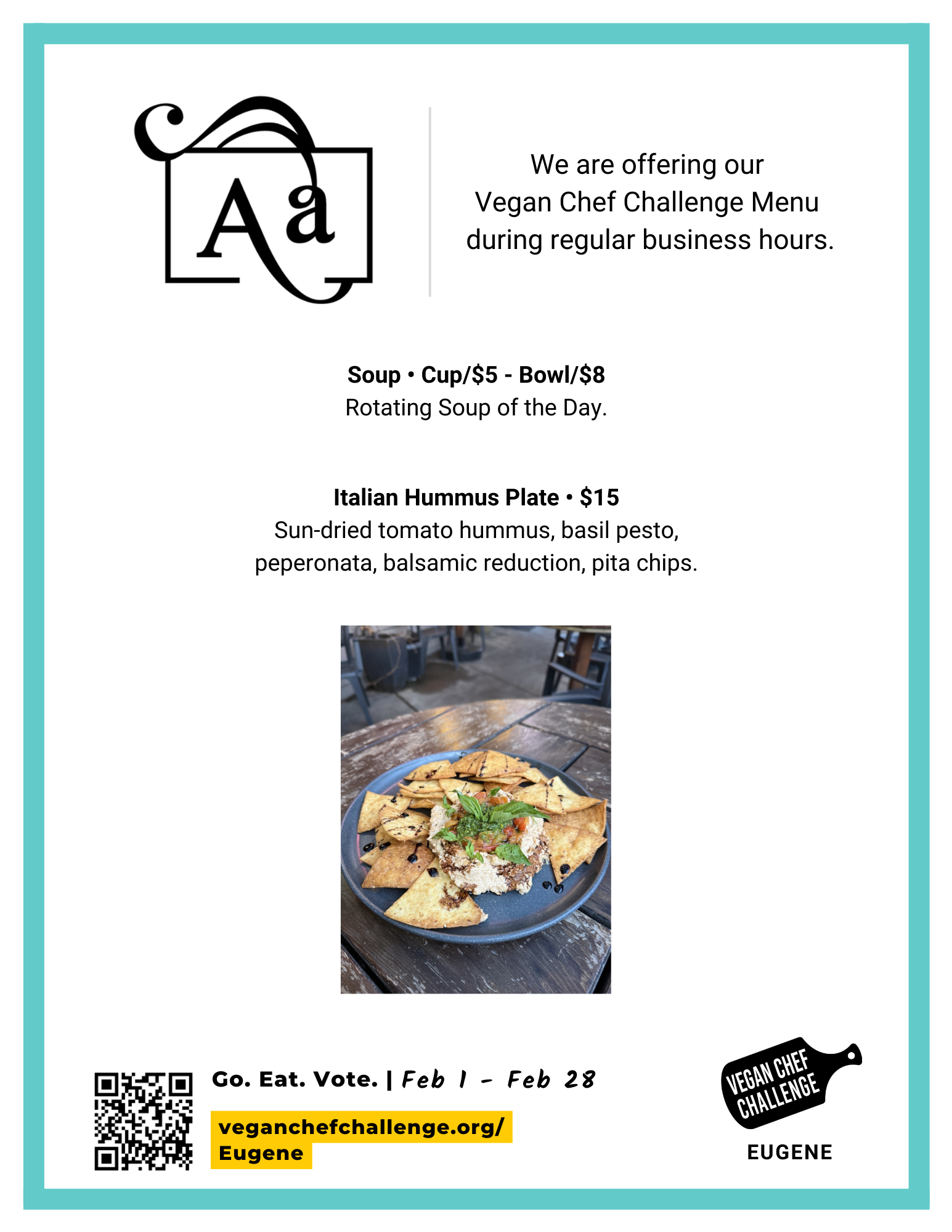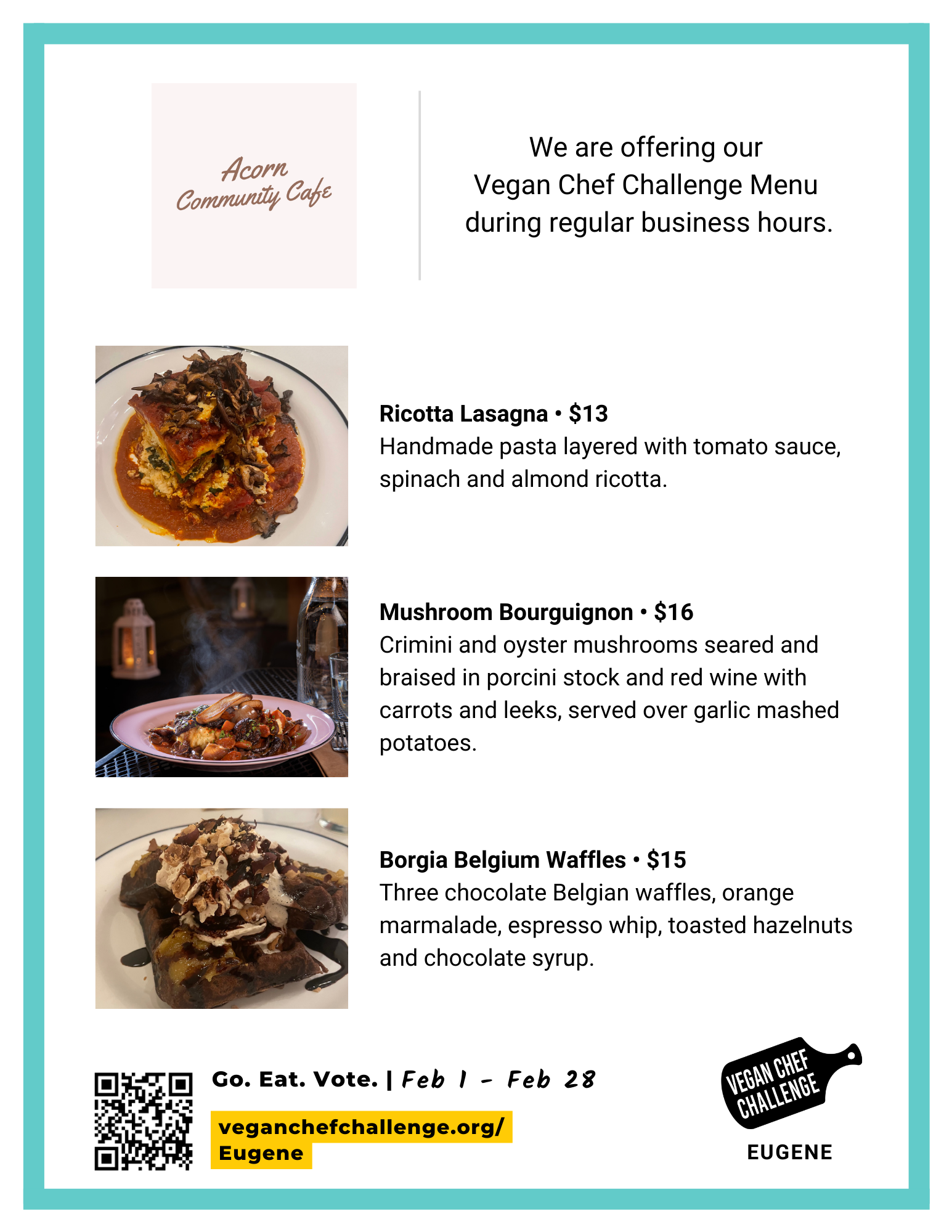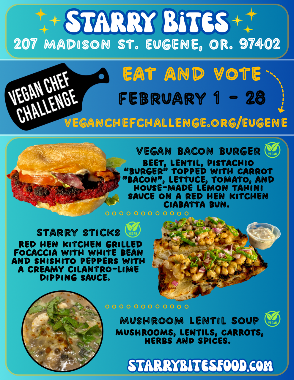 Join us February 1-28, 2026 for an entire month of BRAND NEW vegan options all over Eugene, OR!