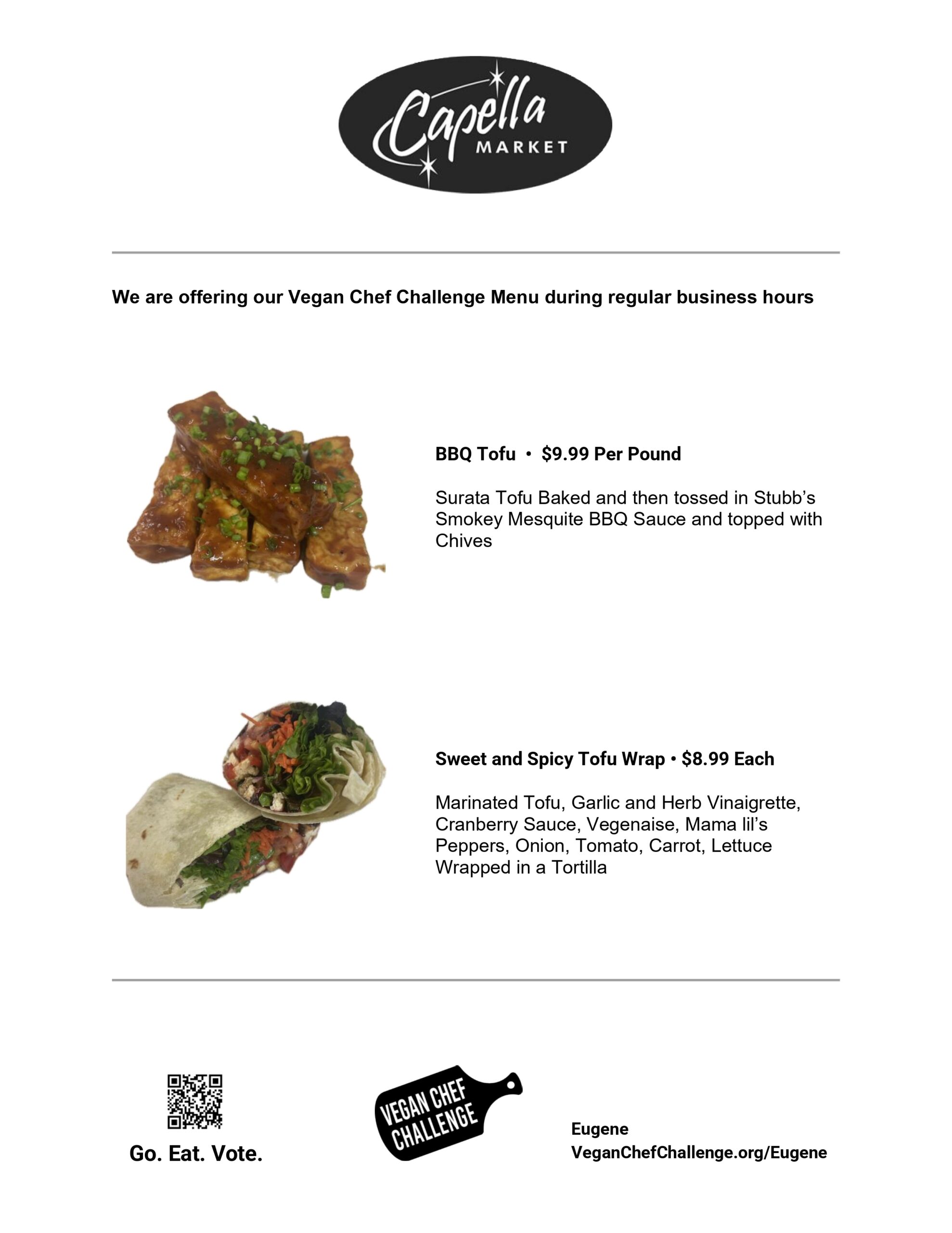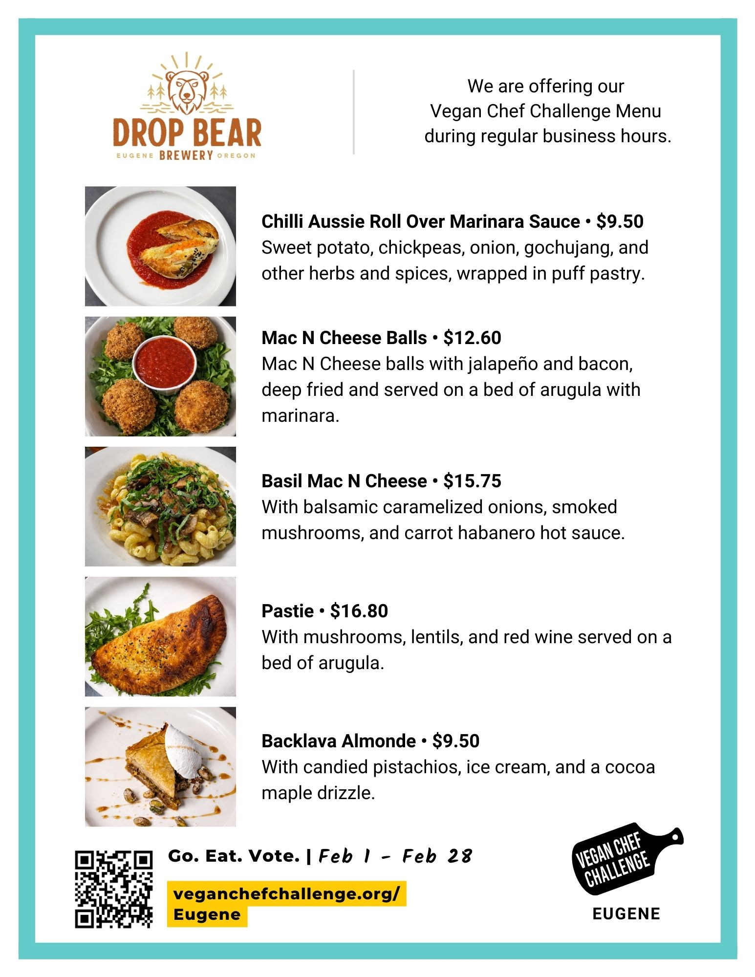 The Eugene Vegan Chef Challenge is sponsored by Drop Bear Brewery, and Capella Market.