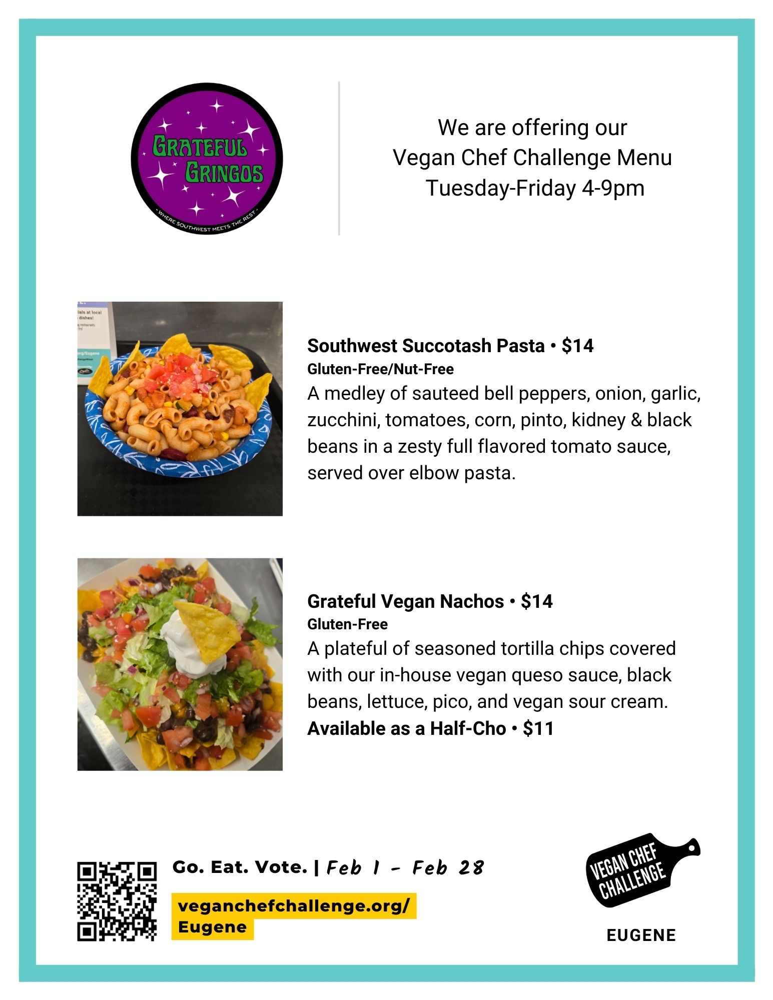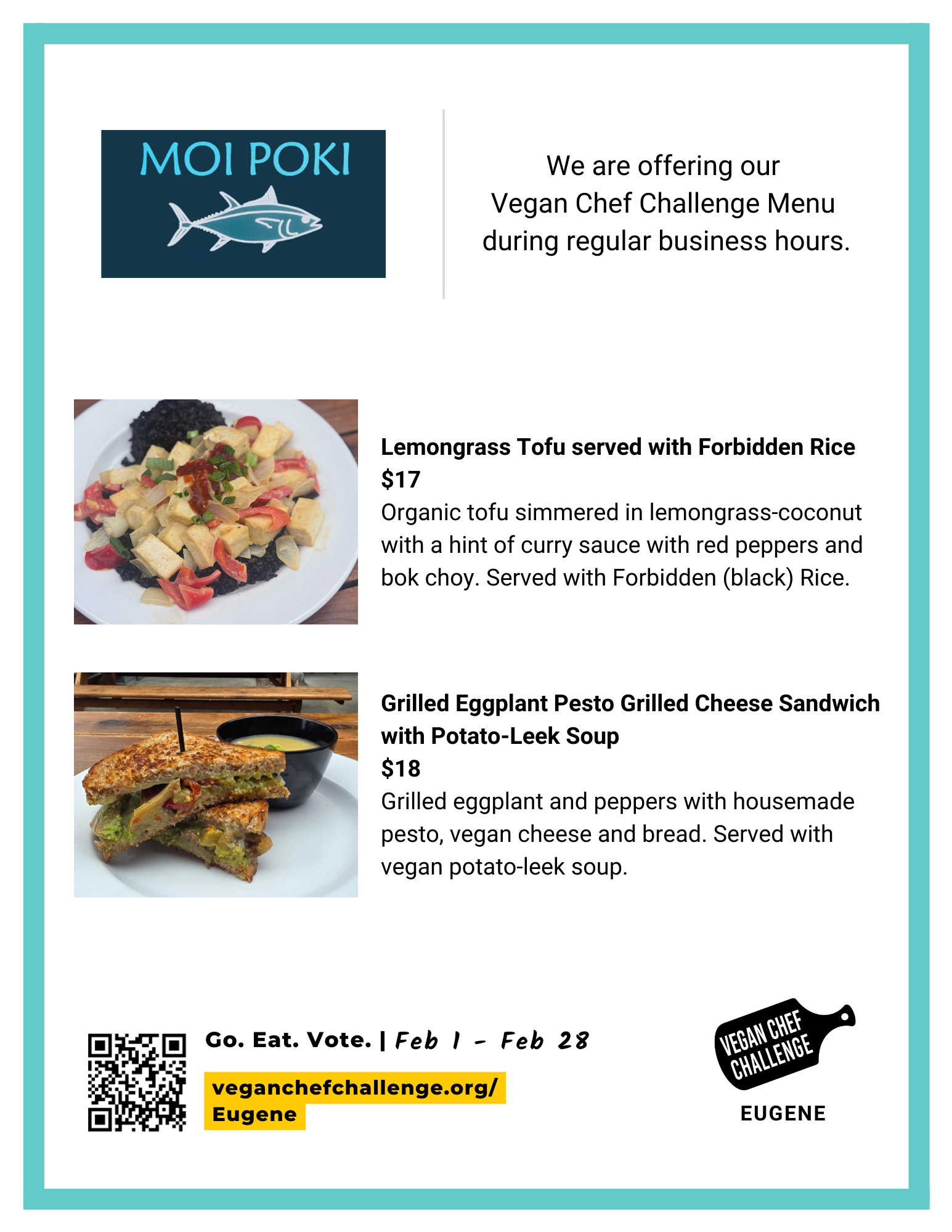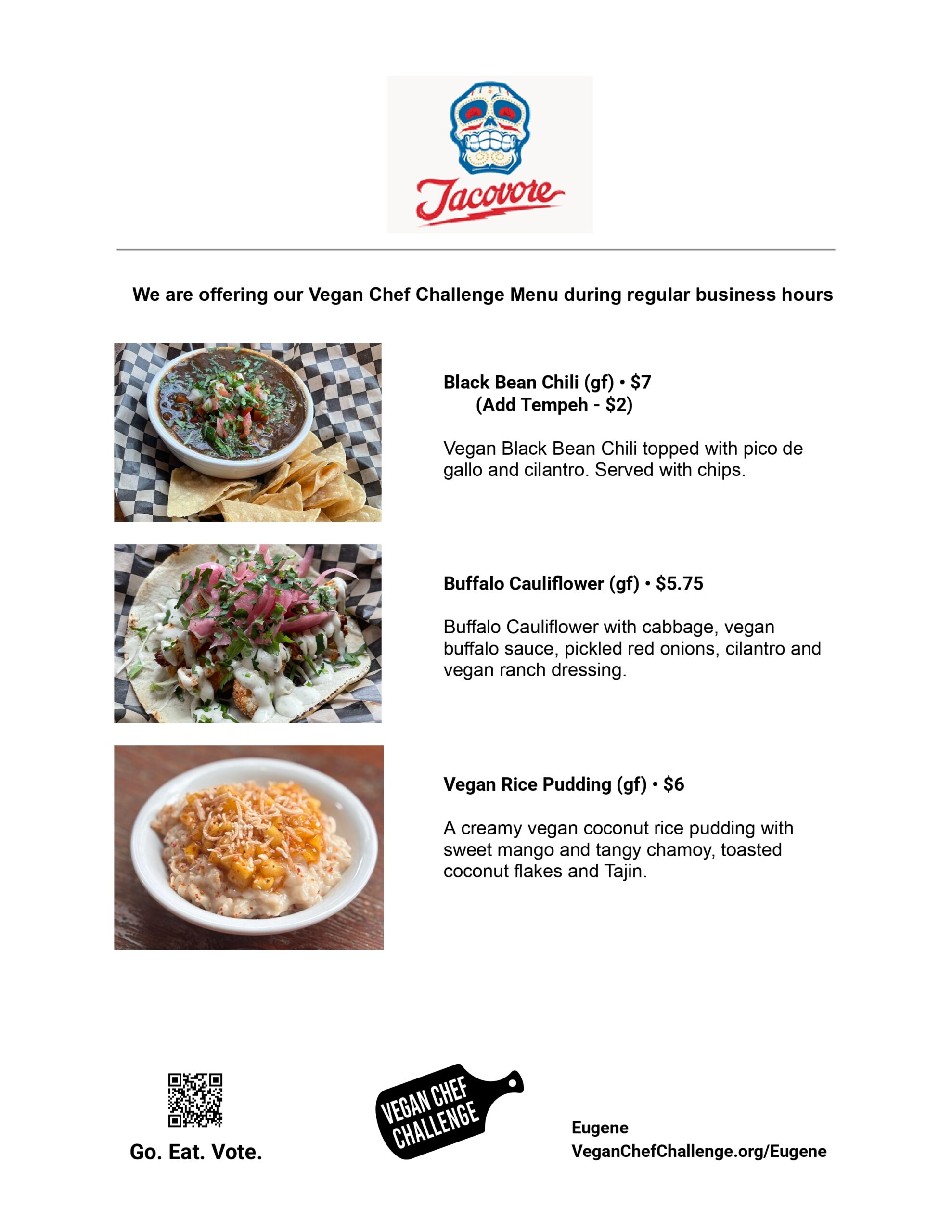 The Eugene Vegan Chef Challenge is hosted by Vegan Outreach in partnership with Compassionate Living, Eugene VeganFest, and Live Lifestyle Medicine.