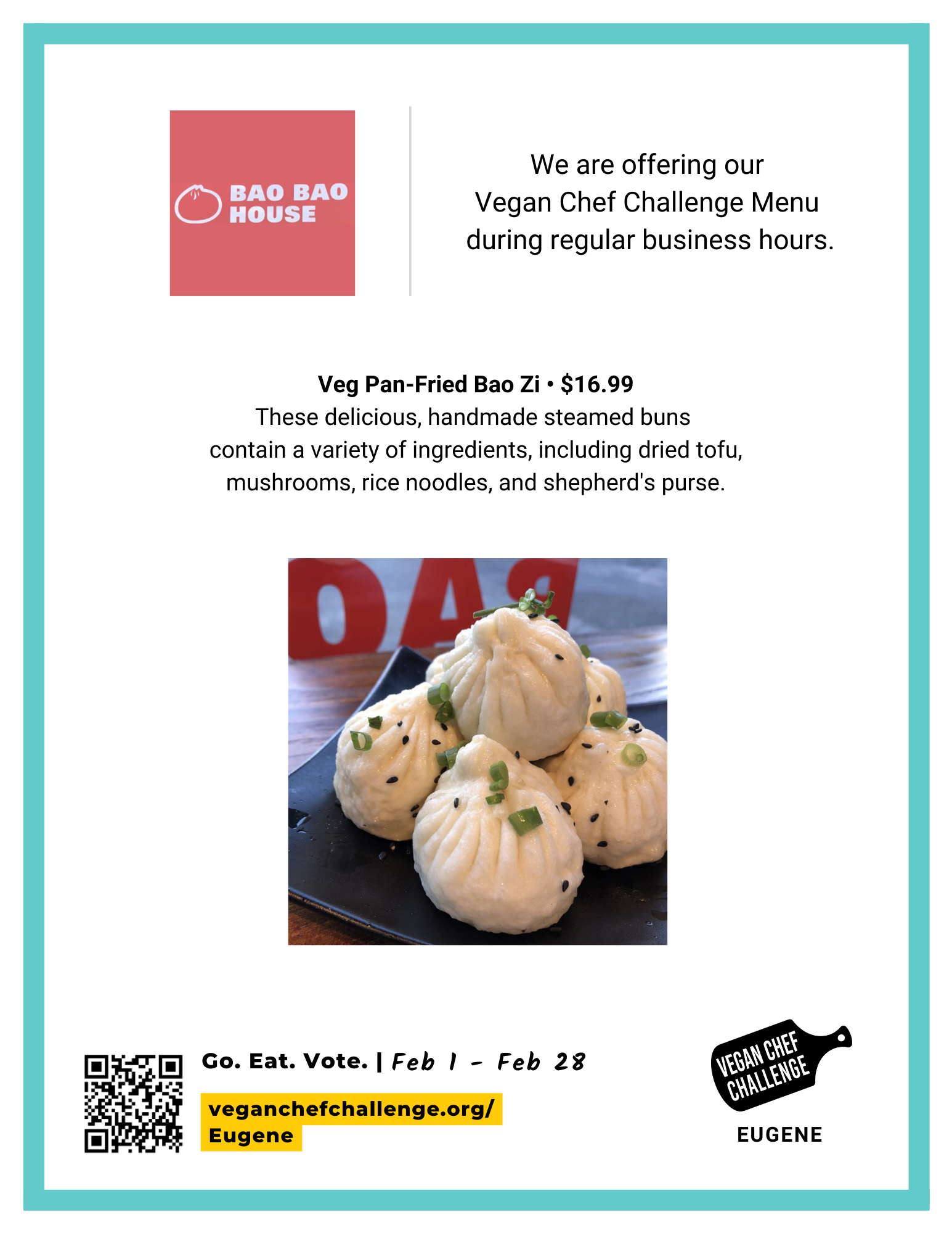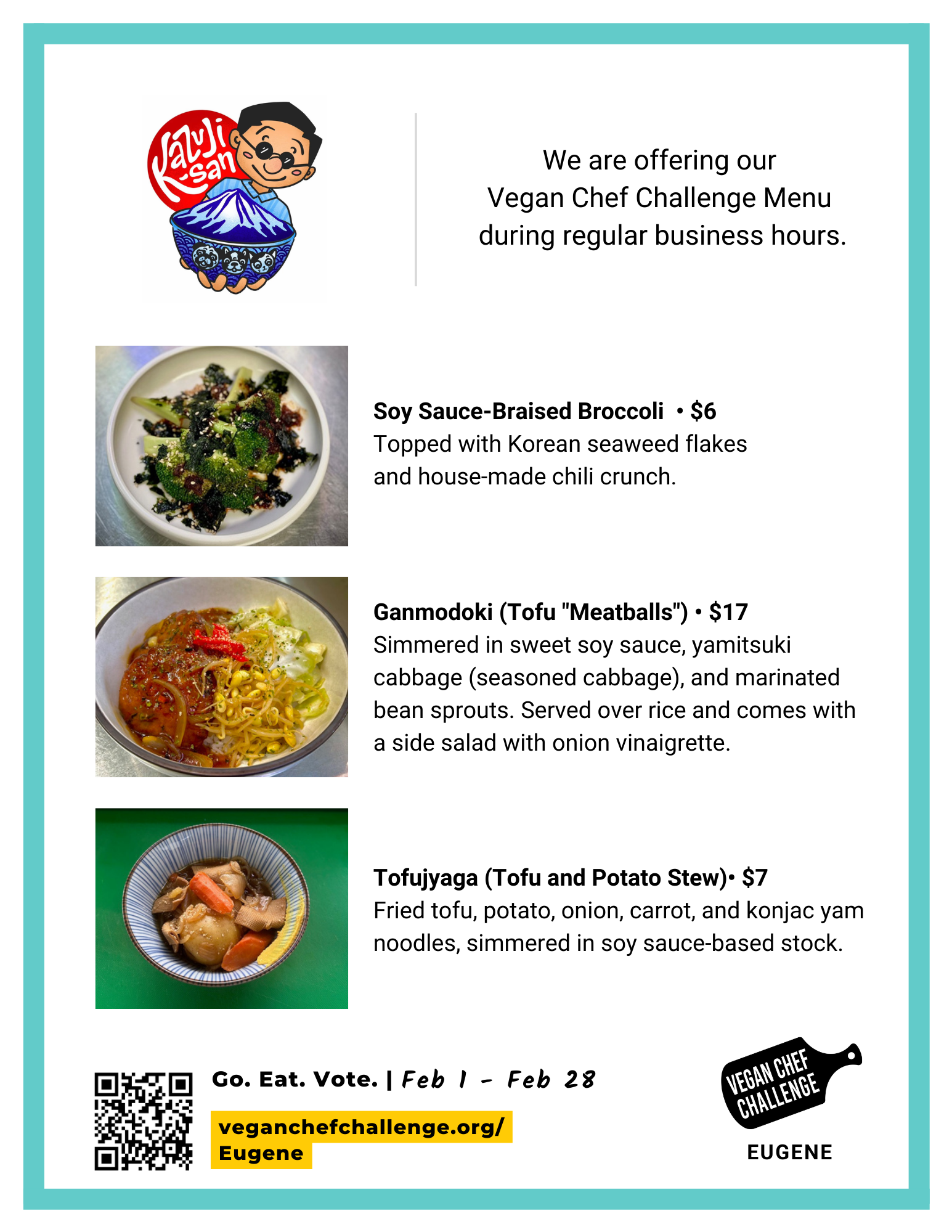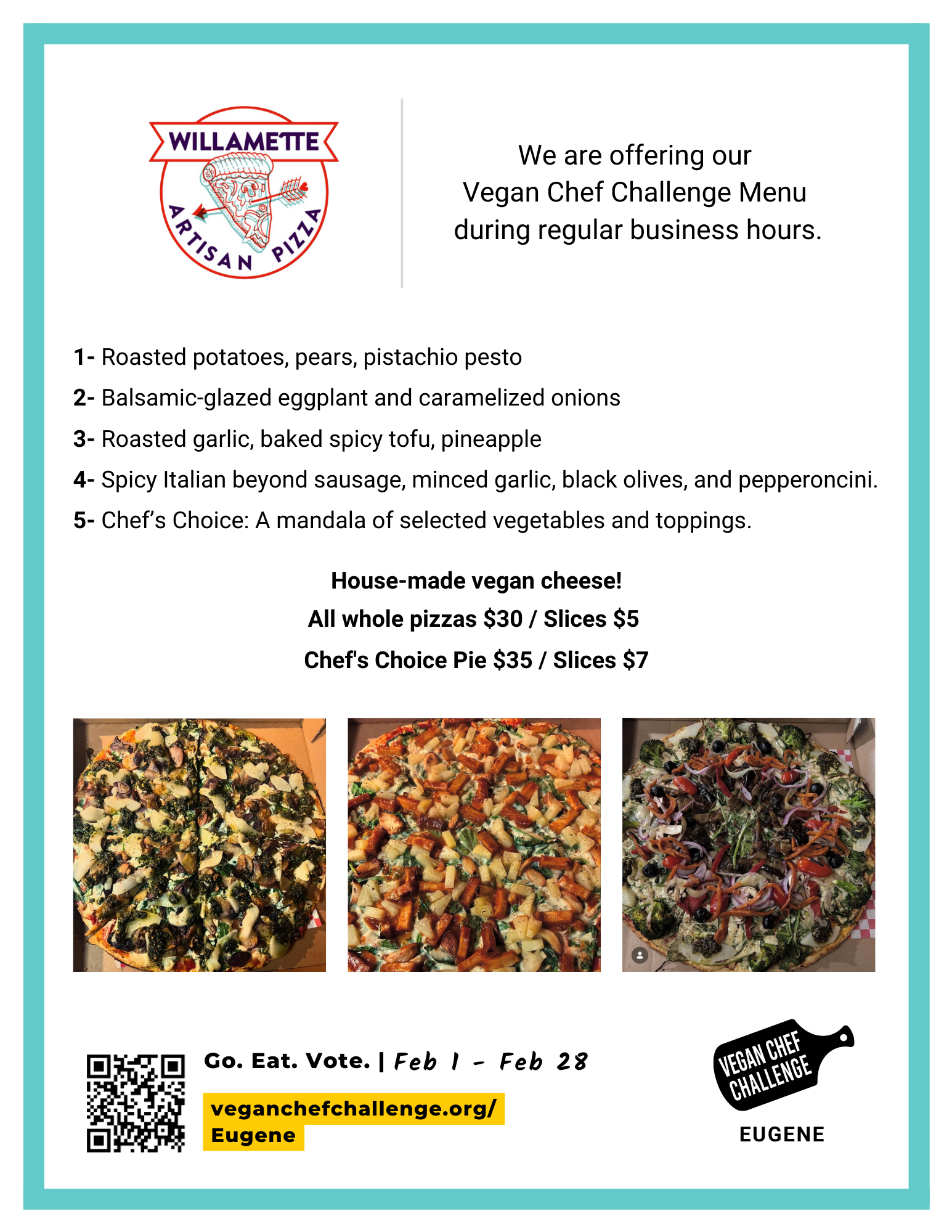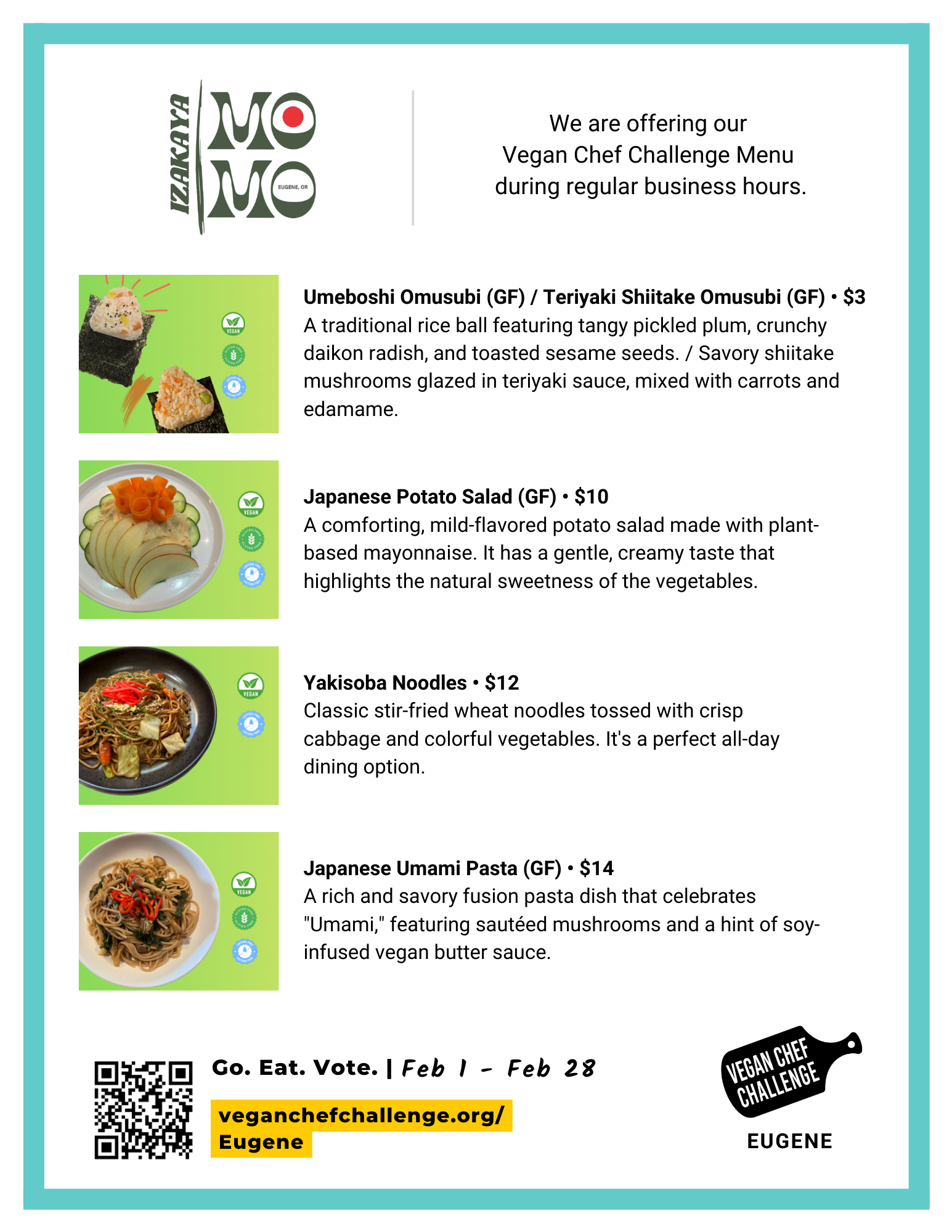 The Eugene Vegan Chef Challenge is hosted by Vegan Outreach in partnership with Compassionate Living, Eugene VeganFest, and Live Lifestyle Medicine.
