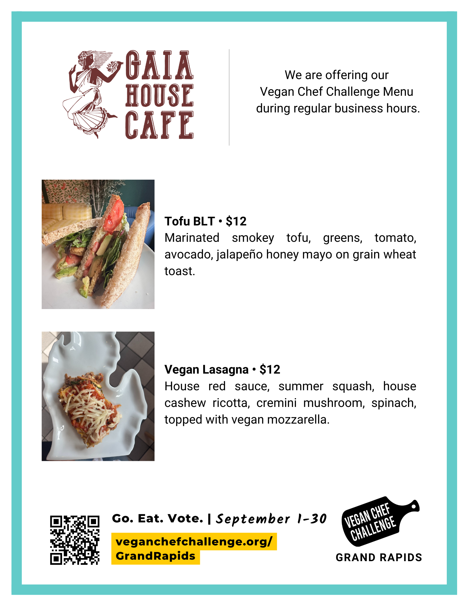 During this time, restaurants throughout the Grand Rapids area will feature special vegan menu items. Diners have the opportunity to go out, enjoy meals, review/rate menus, and post photos of the delicious vegan meals they have ordered.