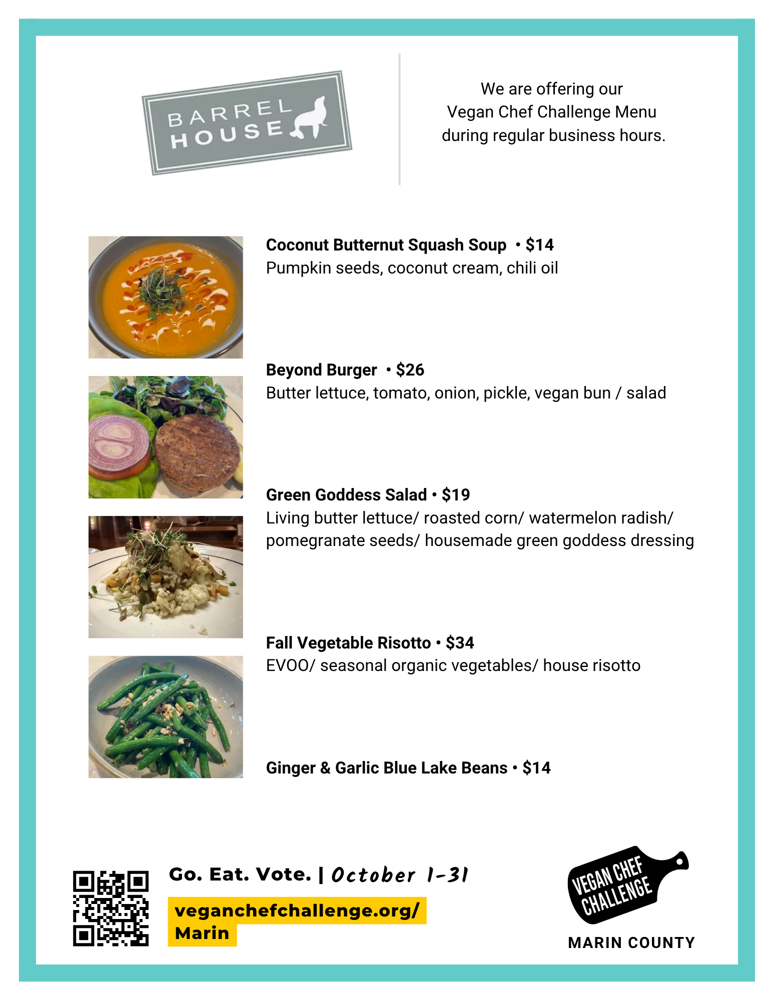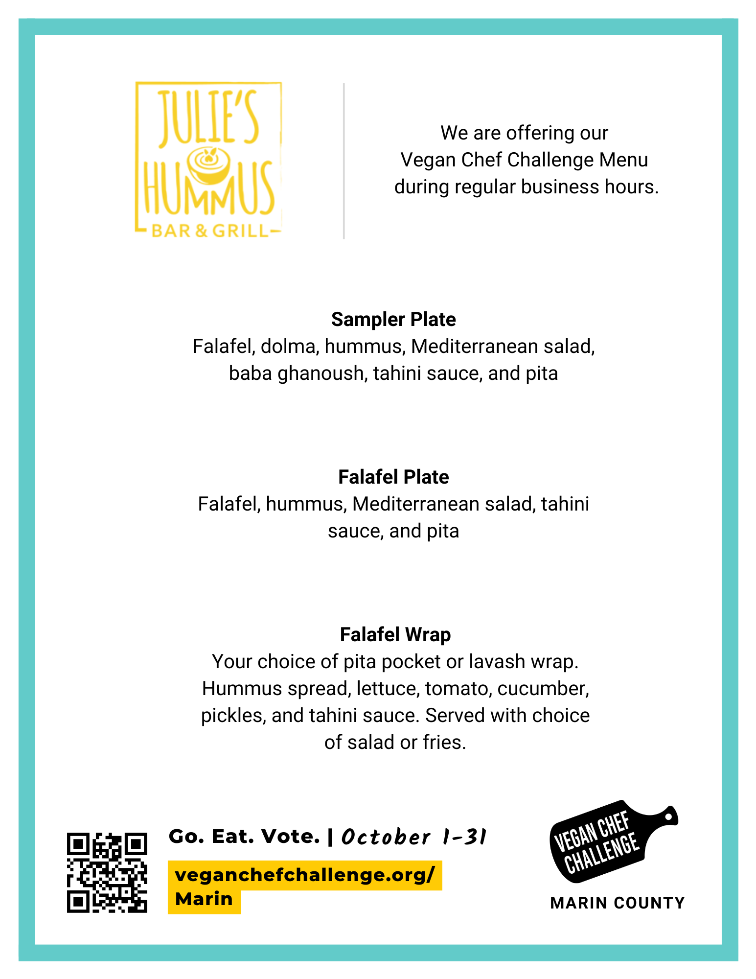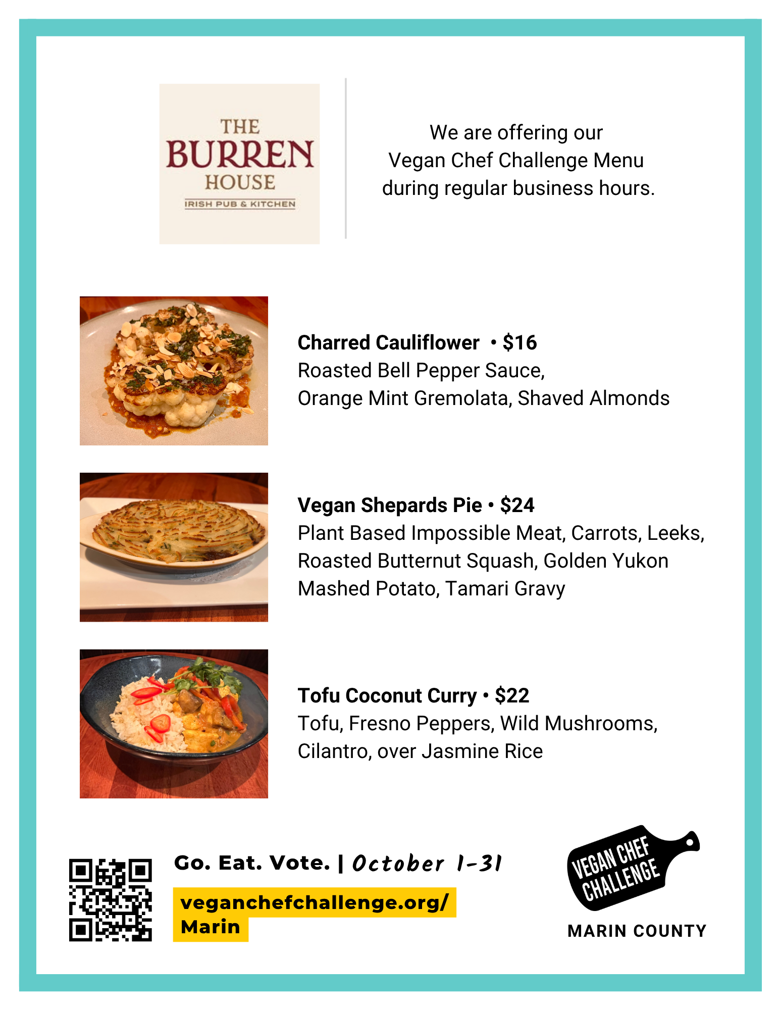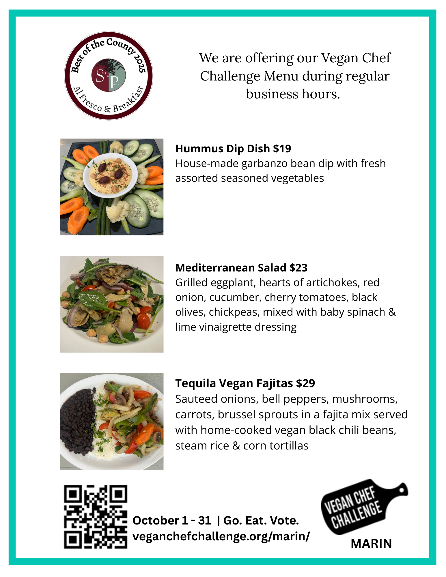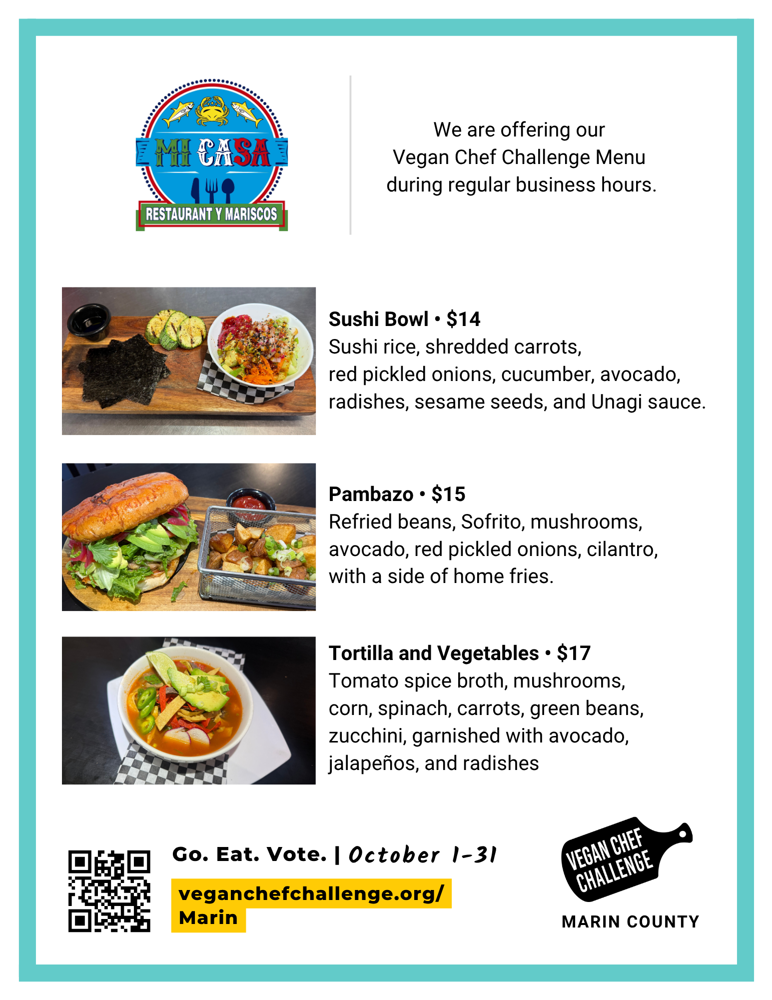The Marin Vegan Chef Challenge is hosted by the Vegan Marin group, join us on Facebook!