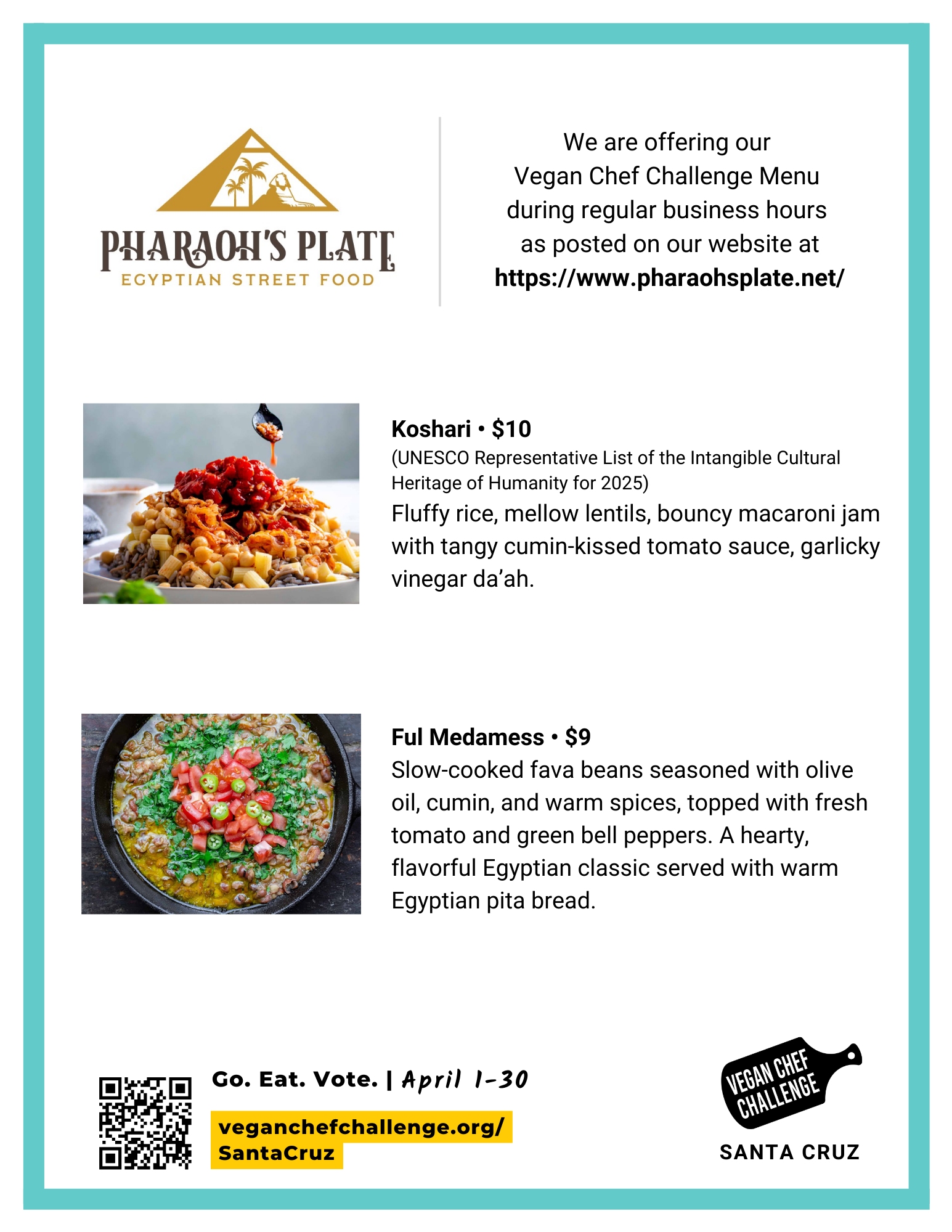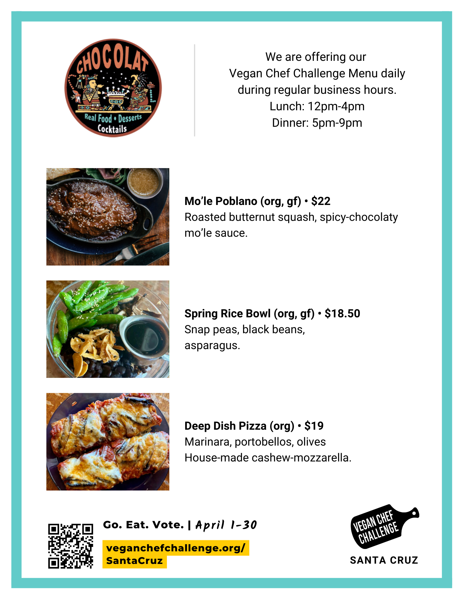 Join us April 1-30, 2026 for an entire month of BRAND NEW vegan options all over Santa Cruz, CA!