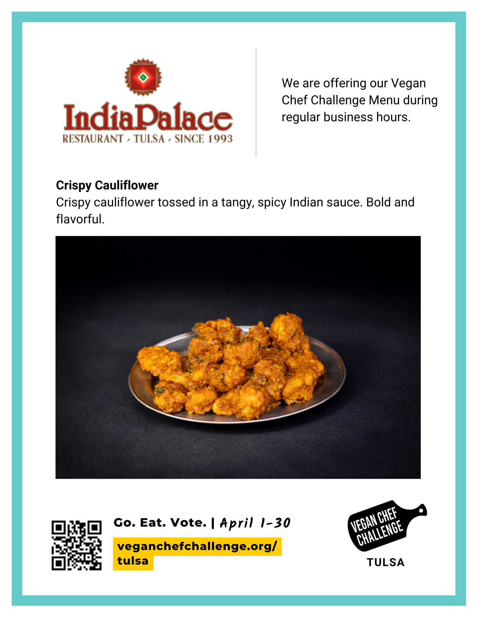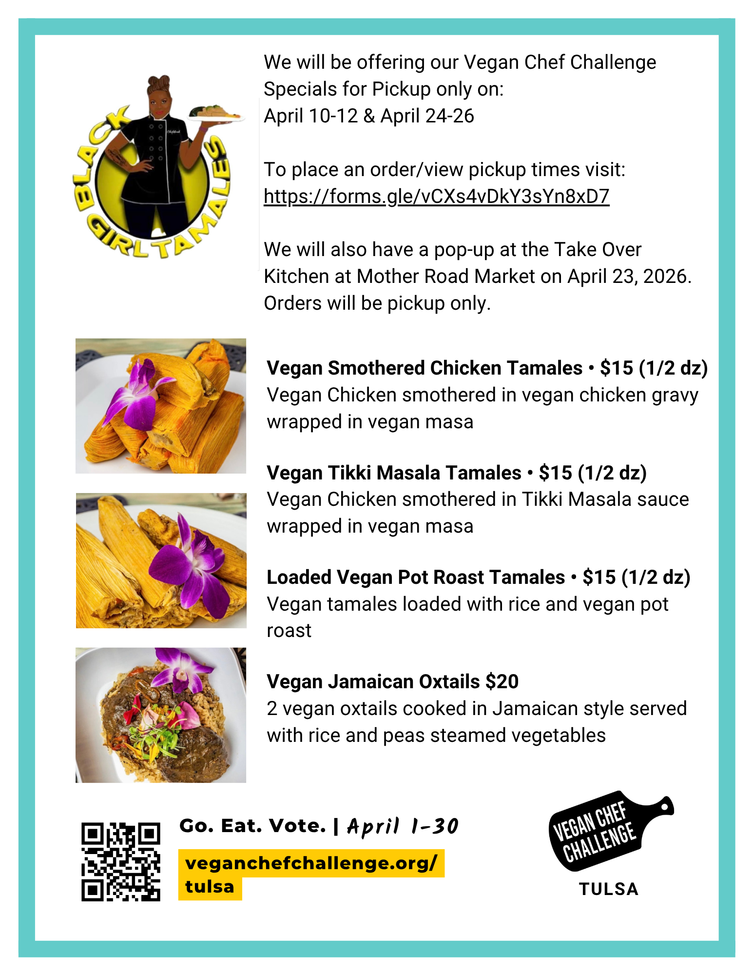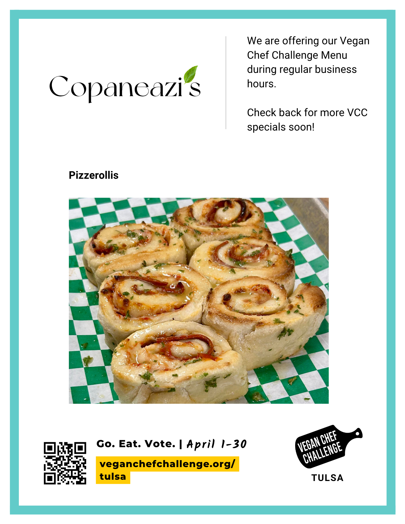 This challenge’s theme is Go Green, Tulsa! We will be encouraging diners to consider plant-based for the environment.